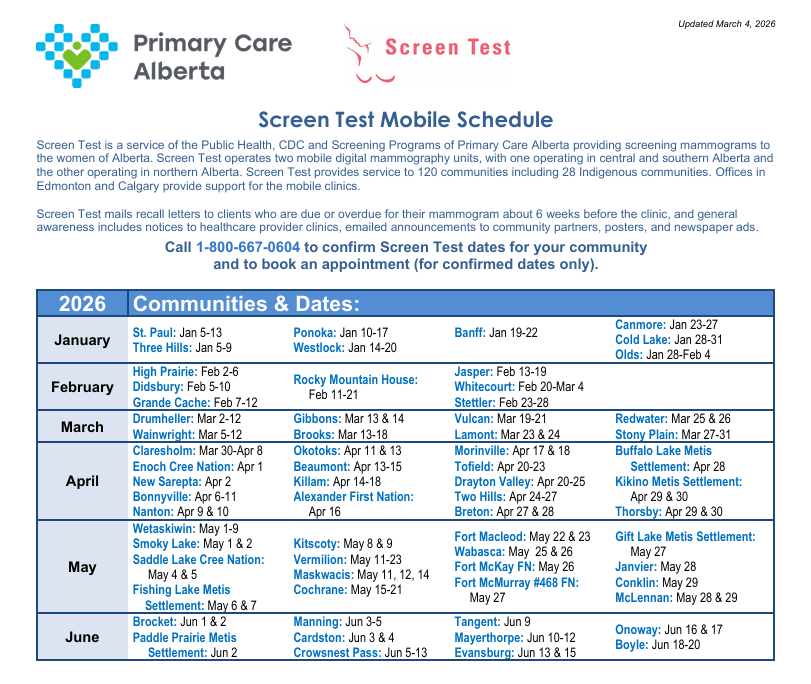Screening Programs transitioned from Alberta Health Services (AHS) to Primary Care Alberta (PCA) in 2025. Some materials will still have AHS branding and language as the transition is finalized.