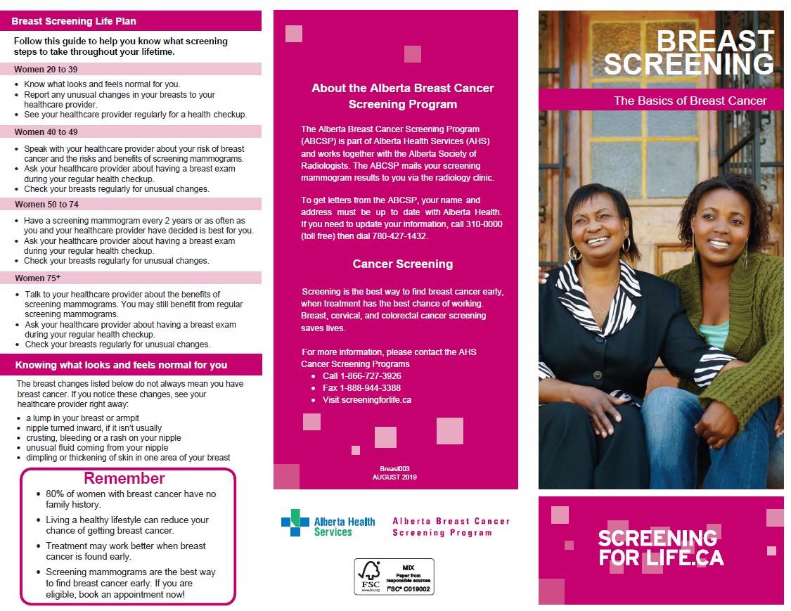 Breast Screening Life Plan Follow this guide to help you know what screening steps to take throughout your lifetime. Women 20 to 39 • Know what looks and feels normal for you. • Report any unusual changes in your breasts to your healthcare provider. • See your healthcare provider regularly…