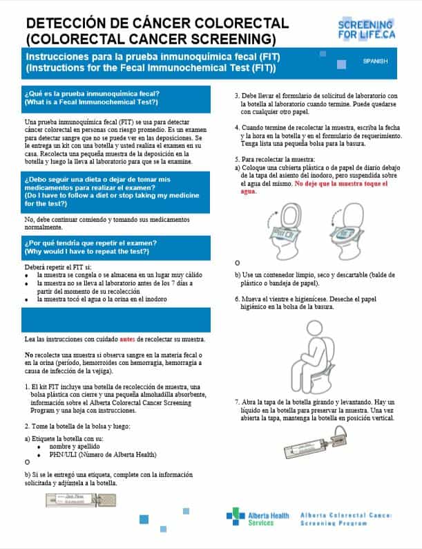 DETECCIÓN DE CÁNCER COLORECTAL (COLORECTAL CANCER SCREENING) Instrucciones para la prueba inmunoquímica fecal (FIT) (Instructions for the Fecal Immunochemical Test (FIT)) ¿Qué es la prueba inmunoquímica fecal? (What is a Fecal Immunochemical Test?) Una prueba inmunoquímica fecal (FIT) se usa para detectar cáncer colorectal en personas con riesgo promedio. Es…