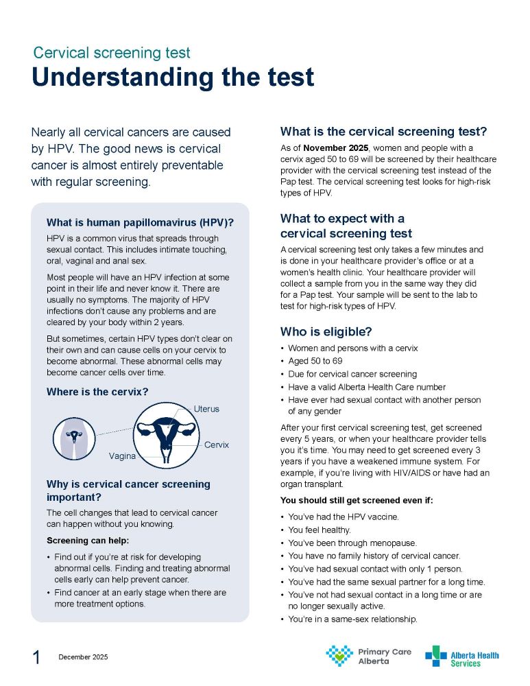 Overview and FAQ for Primary Care Providers HPV primary screening Updated December 2025 Contents Contents .....................................................................................................................................................................2 Overview .....................................................................................................................................................................3 Phased approach....................................................................................................................................................3 Why this change? ...............................................................................................................................................3 Key changes ...........................................................................................................................................................3 What primary care providers need to do ................................................................................................................4 Educate and reassure patients...........................................................................................................................4 Order the cervical screening test as before (No changes) .................................................................................4 Interpret…