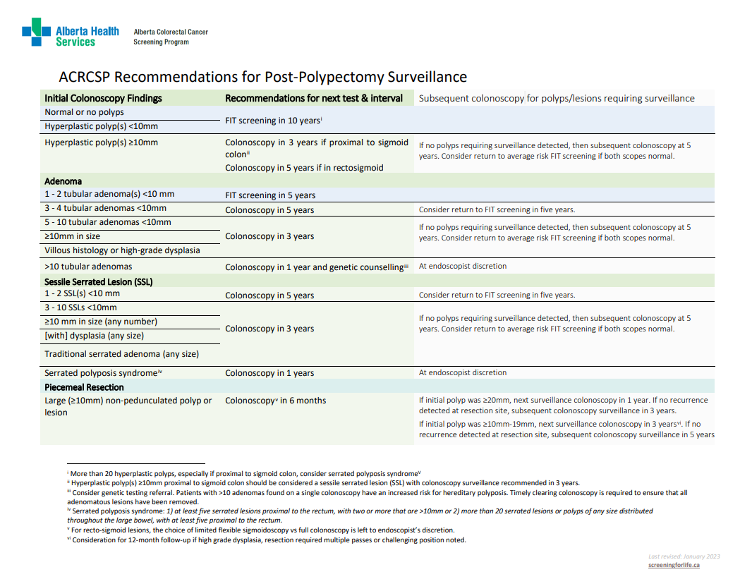 ACRCSP Recommendations for Post Polyp Surveillance_Table_ Jan.2023