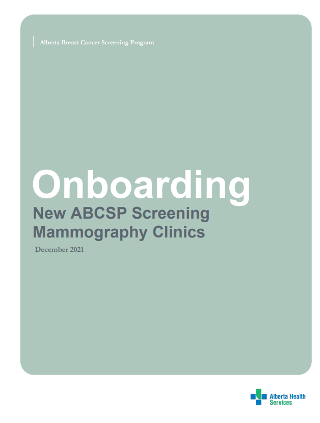 Alberta Breast Cancer Screening Program Onboarding New ABCSP Screening Mammography Clinics December 2021 Alberta Breast Cancer Screening Program Table of contents Table of contents ............................................................................................................. 2 Contact ............................................................................................................................ 3 Introduction ..................................................................................................................... 4 Onboarding New ABCSP Screening Mammography Clinic............................................. 5 Step 1: Notification & Confirmation ................................................................................. 5 Use of Program Logos…