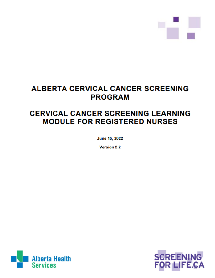 ALBERTA CERVICAL CANCER SCREENING PROGRAM CERVICAL CANCER SCREENING LEARNING MODULE FOR REGISTERED NURSES March 31, 2020 Version 1.0 ↑ Back to Table of Contents Thank you to all 2017-2019 reviewers of the Cervical Cancer Screening Learning Module for Registered Nurses (RNs). Thank-you to the following organizations that provided permission to…