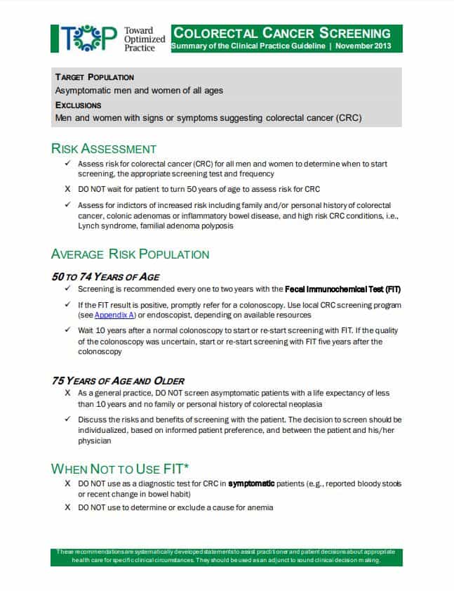 CRC guideline summary