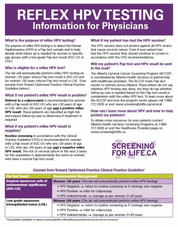 REFLEX HPV TESTING Information for Physicians What is the purpose of reflex HPV testing? What if my patient has had the HPV vaccine? The purpose of reflex HPV testing is to detect the Human Papillomavirus (HPV) in a Pap test sample and to help decide what follow up is needed…